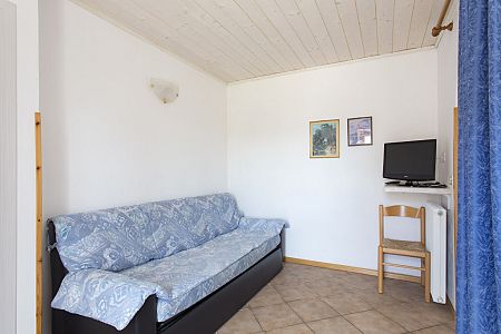 Composizione: cucina - soggiorno con divano letto, una camera (2 letti singoli che si possono unire), bagno con doccia, balcone.